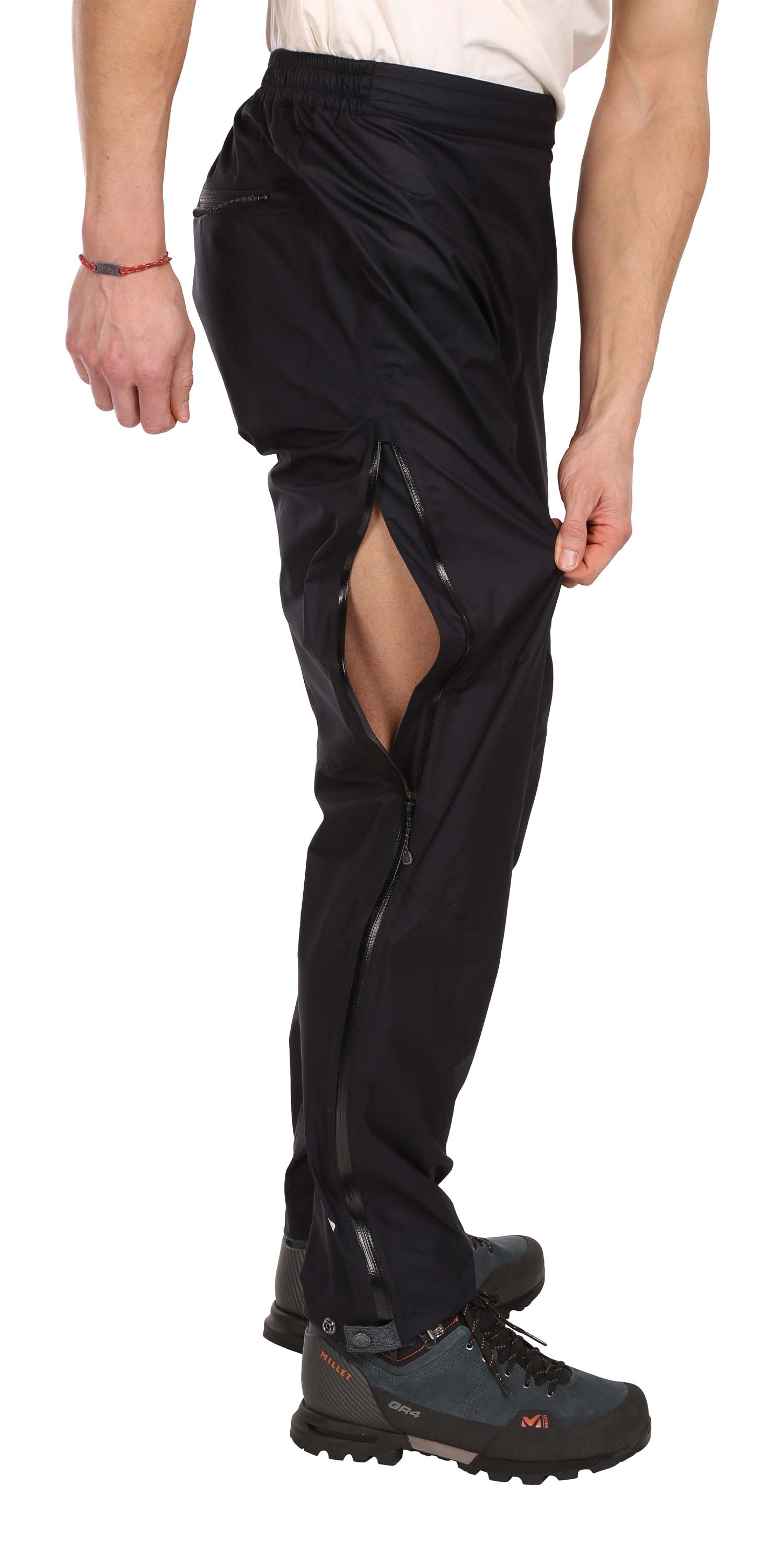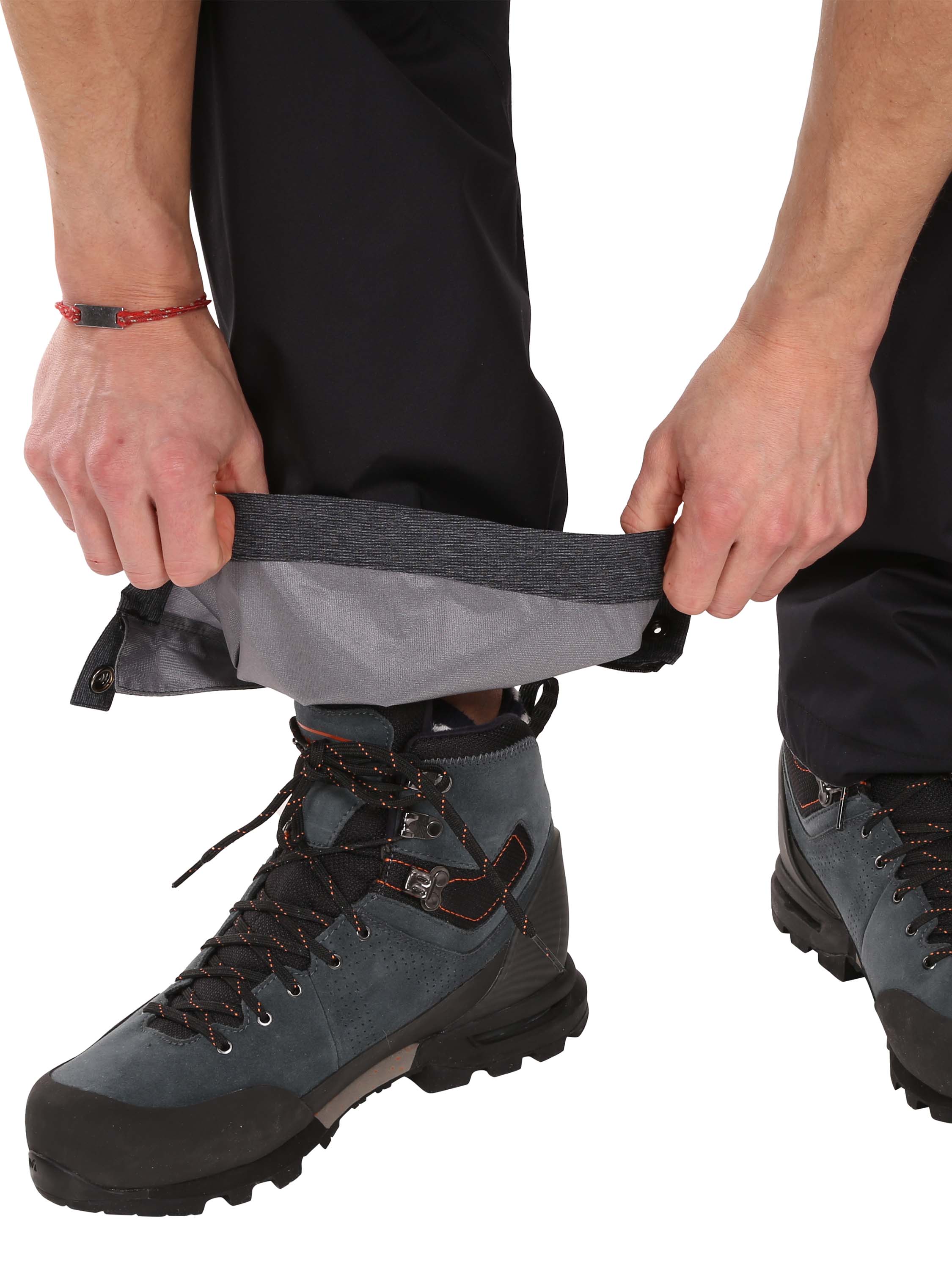 Díky bočním zipům je snadno navléknete i přes skialpovou obuv. Dolní okraj kalhot je vyztužen pevnou látkou, která je chrání před poškozením. Pomocí druků umístěným na dolním kraji lze šíři dolního kraje nohavic dobře regulovat.