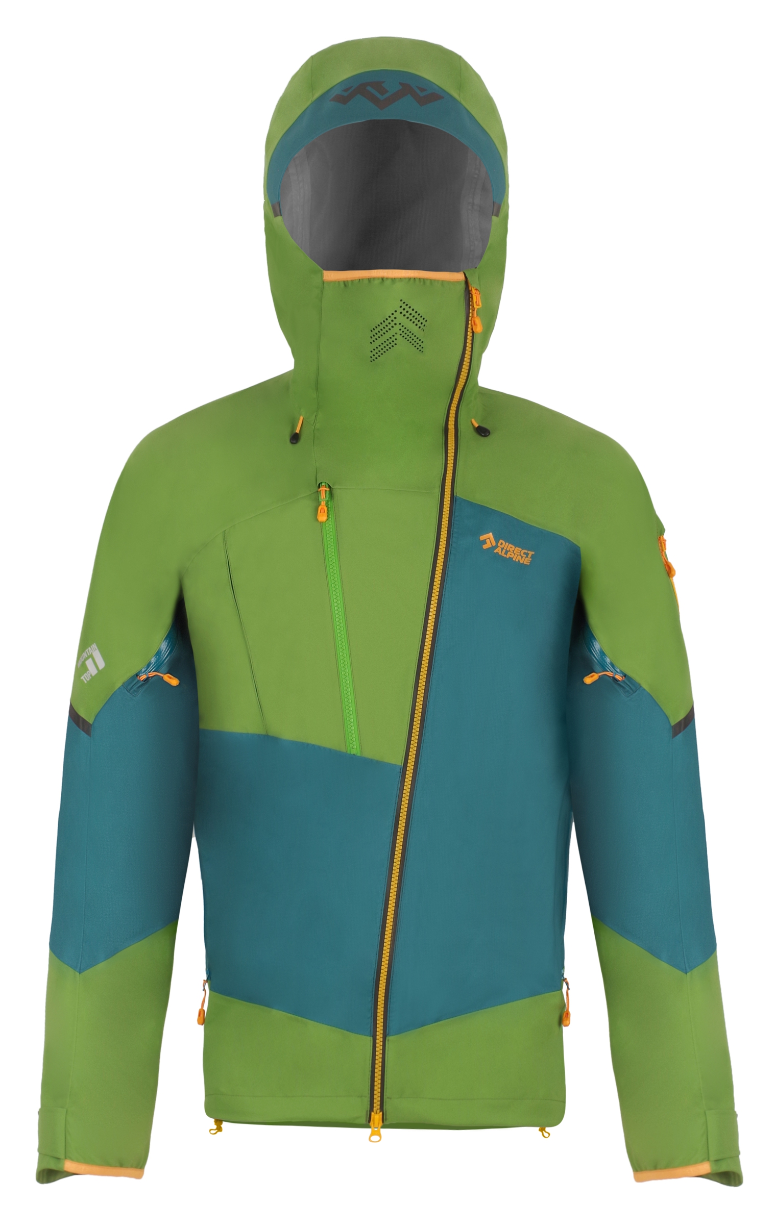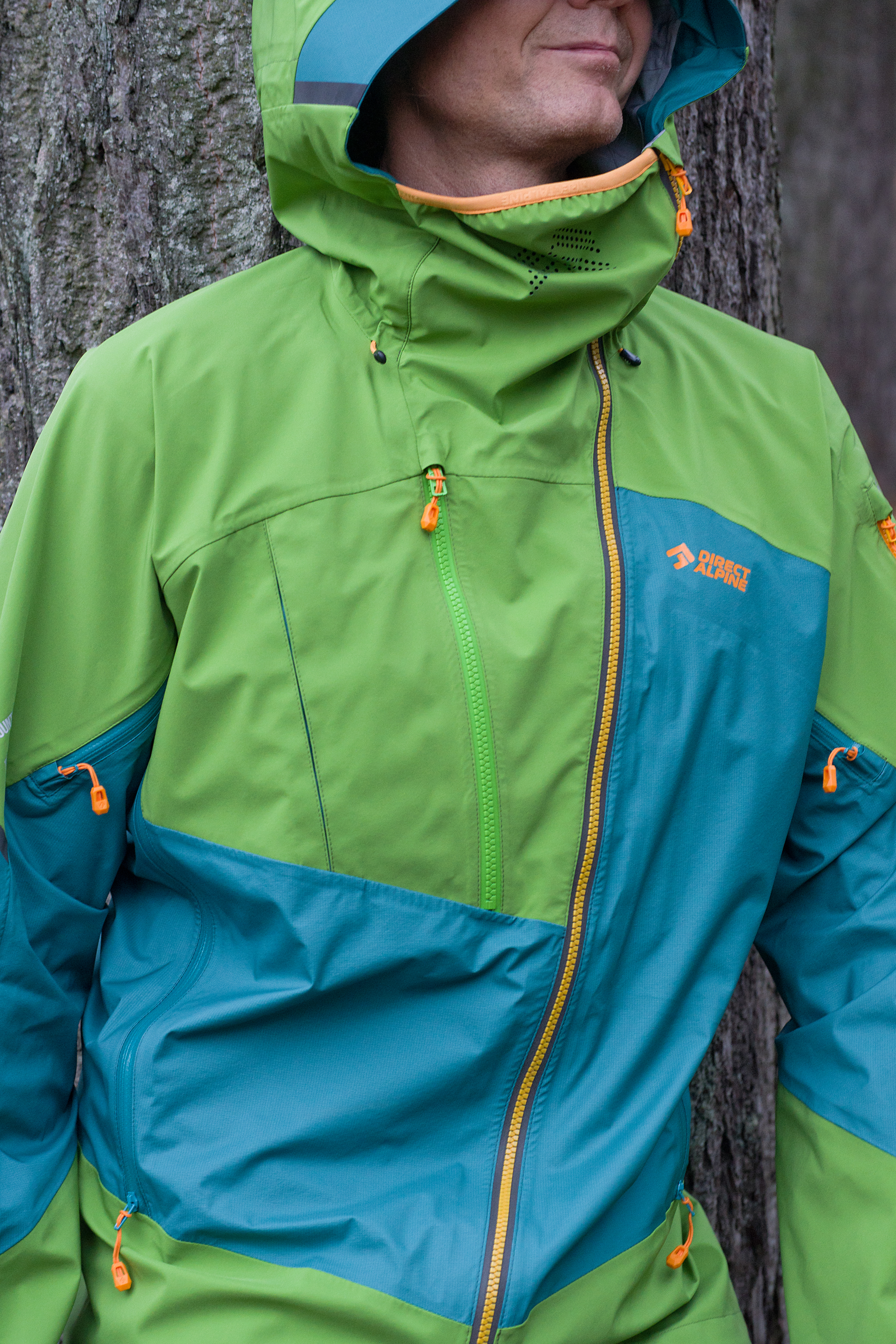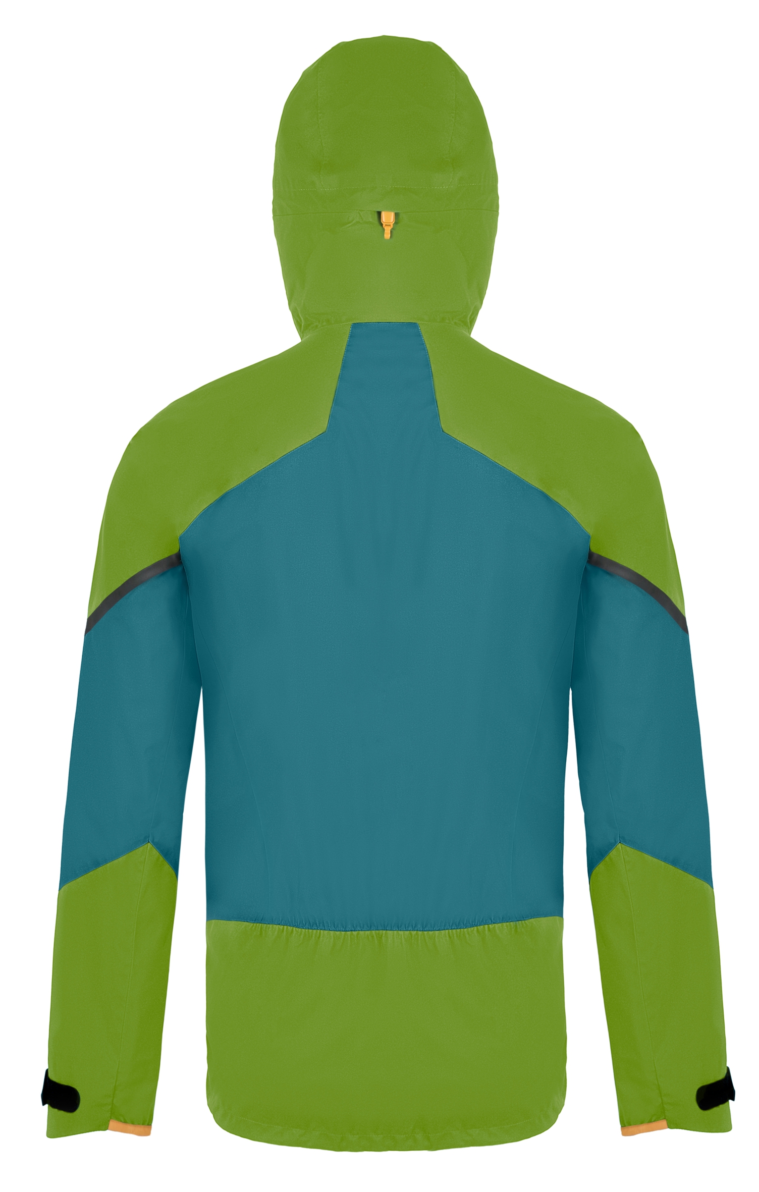Díky kombinaci pevnější tkaniny ve všech namáhaných partiích – na ramenou, rukávech, kapuci a zadním díle a tenčí v méně namáhaných partiích jsme docílili vyladěné konstrukce z pohledu odolnosti, extrémní prodyšnosti a hmotnosti.