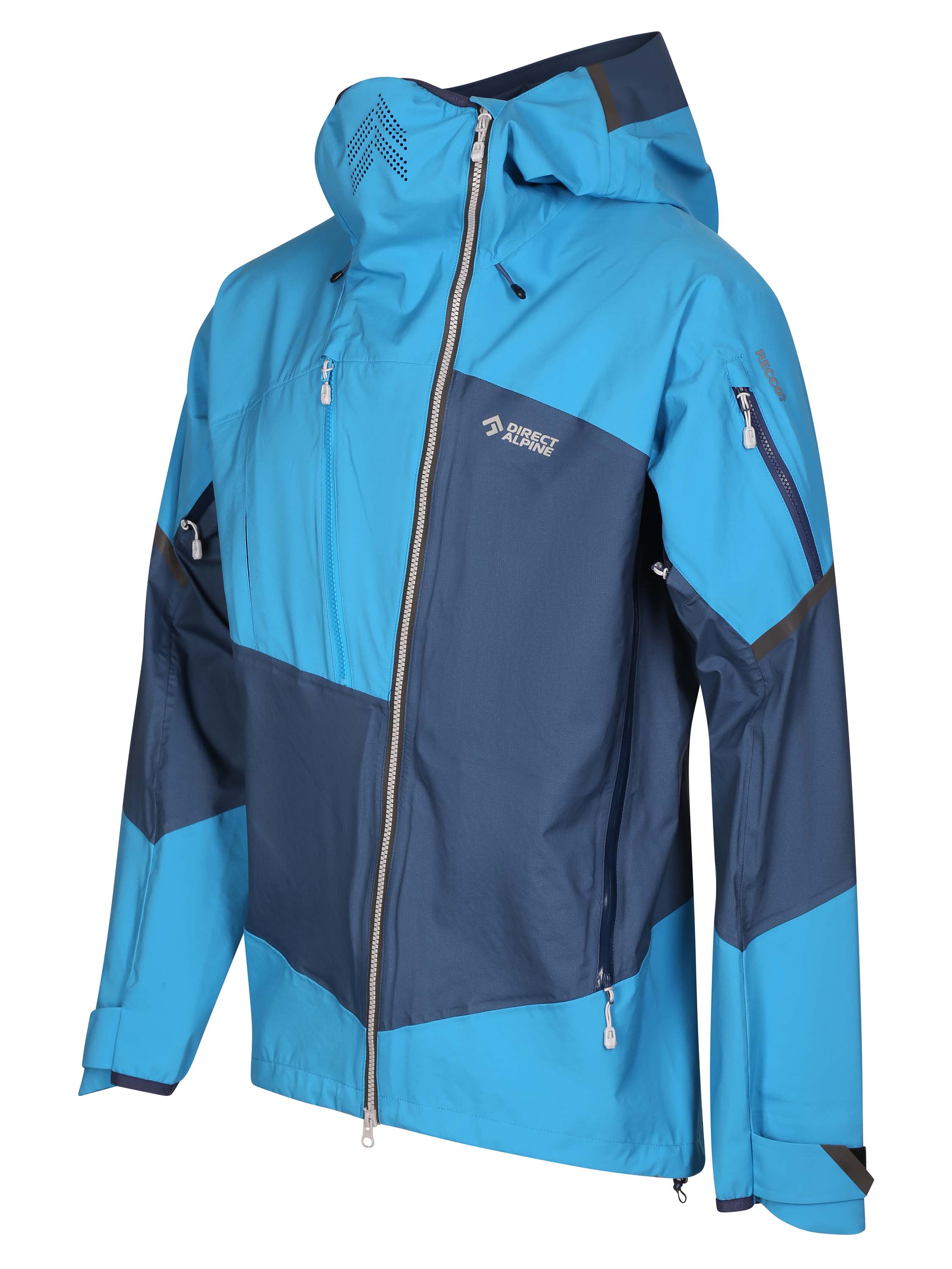 Díky kombinaci pevnější tkaniny ve všech namáhaných partiích – na ramenou, rukávech, kapuci a zadním díle a tenčí v méně namáhaných partiích jsme docílili vyladěné konstrukce z pohledu odolnosti, extrémní prodyšnosti a hmotnosti.