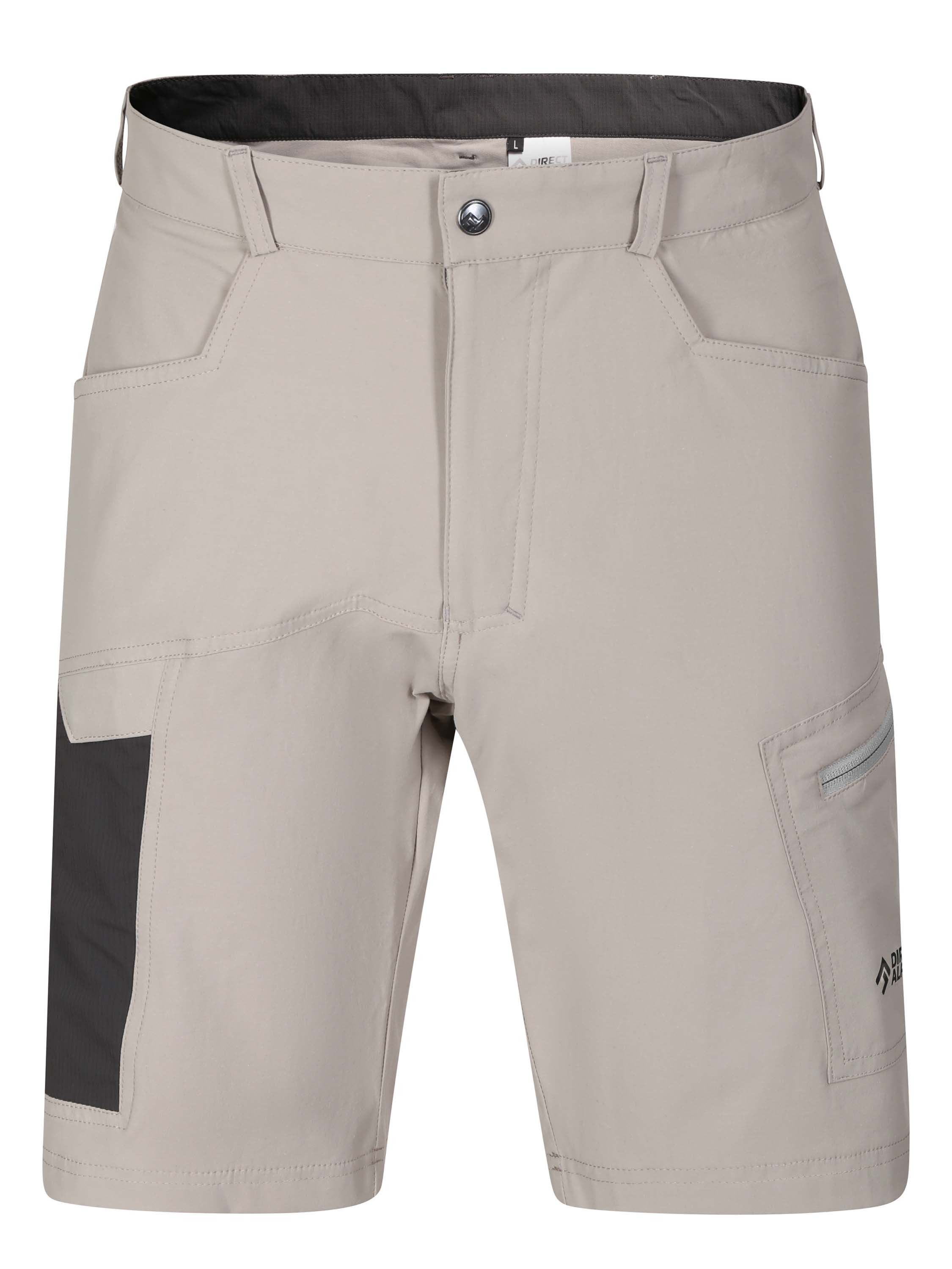 Pas s poutky pro opasky Direct Alpine dodává šortkám nádech elegance a funkčnosti. Praktické kapsy (dvě přední průhmatové, dvě stehenní a jedna zadní nakládaná) poskytují dostatek prostoru pro všechny nezbytnosti.